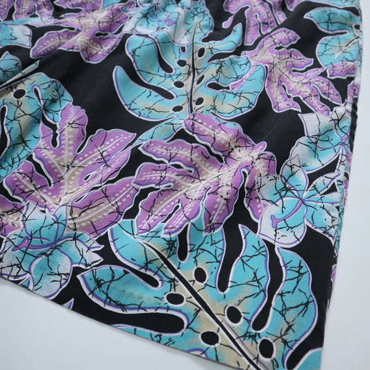 (30-35W)80-90s Hilo Hattie 夏威夷製 黑色滿版熱帶葉短褲